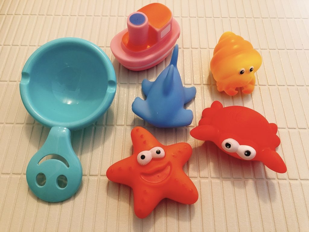 お風呂用もおもちゃを使うとして、そのおもちゃの置き場所や保管方法をどうしたらいいのか悩んでいたのですが、