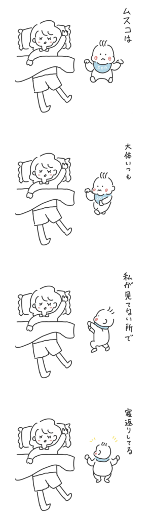 生後3ヶ月 【生後3ヶ月】私にも見せて! pokoyasu 2021/8/23 明け方に授乳して、その後爆睡してたら寝返りしたらしい。 しかも2回も! 旦那はバッチリ見てたっぽい。 その後どんなにお願いしても寝返りしてくれなかった笑
